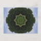Digitale Mandala erstellt mit einem Foto eines Waldes gegen einen hellblauen Himmel.