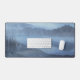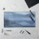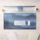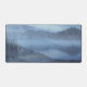 Tapis de bureau de montagne de la forêt humide avec brouillard, lac, roseaux et brume. Forêt nocturne éthérée dans les tons bleus.