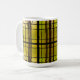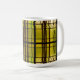 A dark green background of stained glass surrounds this lovely mug.