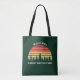 Cool passende Familien Wiedersehen Tote Taschen in grün für die ganze Gruppe zu einem Natur-Ausflug oder Camping-Ausflug bringen. Diese Sondergeschenke mit Sake bieten einen schönen Vintagen Sonnenuntergang über einem Wald mit hübschen Bäumen unter Ihrem personalisierten Text.