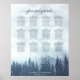 Ce tableau de 12 places mariage est parfait pour un mariage en plein air ou en pleine nature. Il présente un design rustique mais élégant avec une jolie pinède bleue. Le titre dit "s'il vous plaît trouvez votre table" dans la calligraphie de script fantaisie. Il y a de la place pour les noms du couple et la date du mariage. Ce graphique a des affectations de table pour 120 invités - 10 personnes par table.