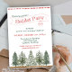 Design classique et vintage unique avec arbres forestiers d'hiver et typographie verte et rouge sur un arrière - plan blanc. Profitez des vacances en partageant ces belles cartes d'invitation avec votre famille et vos amis pour créer des souvenirs inoubliables.
