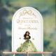 Bienvenue à vos invités dans un style magique avec ce panneau d'accueil personnalisé en acrylique clair. Le panneau présente une belle fille dans une robe d'inspiration forestière avec des papillons, un arc fantaisiste, sur un élégant arrière - plan en arc, créant une première impression enchanteresse. Avec la capacité de la customiser avec le nom de la fille d'anniversaire, ce panneau est un parfait centre pour votre entrée de fête. © Kimbellished, LLC