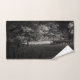 Une collection de serviettes noir et blanc avec un design de paysage hivernal paisible.