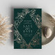 Une élégante sauvegarde de la conception de date avec vos détails mariages en lettrage blanc cassé chic, niché dans un élément géométrique en forme de losange. Une bordure florale complexe de feuilles d'or roses et de feuillage se propage contre un arrière - plan vert de forêt profonde.