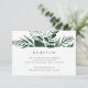 Conçue pour aller de pair avec notre collection de mariage Wild Forest, cette élégante carte d'enclos de réception botanique hivernale présente un bouquet de feuillage vert chasse ornant les détails de votre réception, la date, l'heure, le lieu et l'adresse.