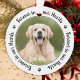 Honorer votre meilleur ami avec un ornement photo de votre animal de compagnie personnalisé. Ce souvenir unique de l'ornement de votre animal de compagnie est le cadeau parfait pour vous, votre famille ou vos amis pour rendre hommage à votre être aimé. Cet ornement commémoratif de chien présente vos photos, Citation "Forever in our Hearts". Customisez avec les photos préférées de chiens ou de chats, et le nom. L'ornement est double face, vous pouvez faire 2 photos préférées, une de chaque côté. Personnalisez le nom à l'avant et les dates à l'arrière. DROIT D'AUTEUR © 2020 Judy Burrows, Black Dog Art - Tous droits réservés. Perte d'animal de compagnie Custom 2 Photo Souvenir Ornement commémoratif de chien
