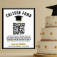 Dieses moderne Black Custom Graduation Party Uni Fond Poster verfügt über einen QR-Link für die Website, mit dem Sie sich an den Universitätskosten Ihres Absolventen beteiligen können. Passen Sie diesen Ausdruck mit Ihrer Nachricht, dem Schulnamen und dem Jahr an.