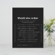 Dieses schwarze Brautparty-Spiel ist perfekt für ein klassisches Brautparty-Fest. Das Design besticht durch einen schönen Schriftart in schwarzem Hintergrund, der Ihre Veranstaltung verzieren wird.
