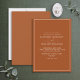 Eine klassische, traditionelle Burnt Orange Hochzeitseinladung mit Skriptkalligraphie. Perfekt für die moderne Braut mit einer formalen Affäre. Siehe vollständige Sammlung hier: https://www.zazzle.com/collections/elegant_burnt_orange_classic_script_wedding-119586740302574987 Copyright Anastasia Surridge for Elegant Invites, alle Rechte vorbehalten.