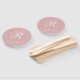 Einfache Hochzeitshandfans in staubigen Rose pink mit Ihrem Monogramm in einem eleganten Skript zusammen mit Ihren Namen, Veranstaltungsort und Hochzeitsdatum. Das klassische Design ohne Grafiken macht diese Handfans zu einem idealen Begleiter für eine feierliche Hochzeit.