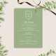 Formal Sage Green Floral Monogram Crest Wedding Begleitkarte