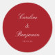 Stilvolle formale Klassische Schrift Elegante Hochzeit Einladung Custom Classic Round Sticker in Rot und Weiß