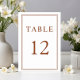 Elegante formale Terracotta Hochzeit Tischnummer.