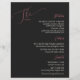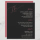 Diese leichten und luftigen 8,5" x 11" eleganten, formalen Dinner-Blatt-Menüs mit Magenta und Knochenschrift auf schwarzem Hintergrund mit der Meldung "The Menu", mit Platzhaltern für 2 Vorspeisen, 3 Vorspeisen, 2 Seiten und 2 Nachspeisen.