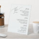 Diese leichten und luftigen 8" x 10" eleganten, formalen Abendmenüs mit schwarzen Buchstaben auf weißem Hintergrund mit der Meldung "The Menu", mit Platzhaltern für 2 Vorspeisen, 2 Vorspeisen, 2 Seiten und 2 Nachspeisen.