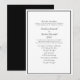 Feierliche Einladung zur Hochzeit. Verbundene Eltern wurden aufgelistet. Weiß und Schwarz. Elegantes Skript. Zwei Orte.