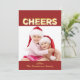 Votre photo préférée est agrémentée de "Cheers" écrits en lampes de marquee vintages sur un arrière - plan rouge canneberge. Il est imprimé sur la carte en forme de Tag, de sorte qu'il peut facilement être attaché avec un ruban et envoyé par la poste, ou attaché à une bouteille, un sac cadeau ou un cadeau.