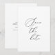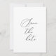 Formelle Save the Date flache Ansichtskarte. Schwarze Typografie auf weißem Hintergrund mit Details auf der Rückseite. Kimberly Brett.