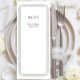 Das Design ist sauber und klassisch in Schwarz und Weiß gehalten, was es minimalistisch und elegant macht. Es verfügt über einen einfachen, zweizeiligen Rahmen mit runden Eckdetails, die das Layout umrahmen. Im hinteren Teil ist eine ovale Form, innen ist ein 2 Monogramm des Paares mit dem detaillierten Menü in formalen Kalligrafieschrift geschrieben.