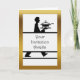 Formal Dinner Einladung, Server - Kellner mit einer Platte und Terine. Schwarz-Weiß-Illustration mit goldfarbenem Rahmen. Der Server hat eine formelle Kleidung mit Krawatte und Jacke. Ändern Sie den Text nach innen, um ihn an Ihren Anlass anzupassen. Sie können sogar das Menü einbinden, falls gewünscht. Art, Bild und Vers Copyright © Shoaff Ballanger Studios.