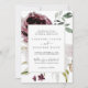 Diese blumengeschmückte romanische Hochzeitseinladung eignet sich perfekt für eine elegante Hochzeit. Das moderne rustikale bohobische Design besticht durch romantische Aquarellfarben in sanften Farbtönen wie Bordeaux, Lila, Rosa und Cremeweiß mit grünen Blätter.