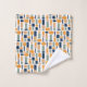 Dieses Handtuchhandtuch-Set hat ein modernes Design von Ovalen und Rechtecken in Mustern wiederholt sich in der Design.