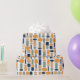 Dieses Verpackungspapier hat ein modernes Design von Ovalen und Rechtecken in Mustern, die sich im Design wiederholen.