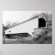 Ein Foto der Forsythe-Brücke, die über den Big Flat Rock Creek bei Moskau, Indiana, führt. 1888 baute der Bauunternehmer Emmett L. Kennedy die Forsythe-Brücke. Die Kennedy-Familie von Rushville baute fast sechzig überdachte Brücken, die sich vor allem durch das Rollstuhl und die Kornbrackets am gewölbten Portal, die horizontale Holzverkleidung und die weiß gekalkte Fassade auszeichnen. Fast alle, einschließlich der Forsythe, benutzen den Burr-Bogen. Die gut gearbeitete Forsythe-Brücke illustriert die Leistungen Kennedys im Bridge-Gebäude.