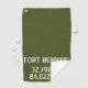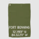 Längen- und Breitengradkoordinaten für Fort Benning - Kolumbus, Georgia Stift weißer Schriftart auf armeengrünem Hintergrund.