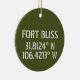 Ceramic keepsake ornament features latitude and longitude map coordinates for Fort Bliss, El Paso TX