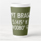 Längen- und Breitengradkoordinaten für Fort Bragg, in der Nähe von Fayetteville, weißer Schriftart im Stil von North Carolina Stencil auf army-grünem Hintergrund.