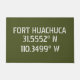 Längen- und Breitengradkoordinaten für die Installation der Armee in Fort Huachuca, Stencil im Stil von Sierra Vista Arizona auf armeengrünem Hintergrund.