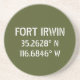 Längen- und Breitengradkoordinaten für Fort Irwin - befindet sich in der Wüste nahe Barstow, im kalifornischen Stift weißer Schriftart auf army grünem Hintergrund.