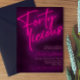 Invitation minimaliste avec néon design et couleur rose Fuschia ont été utilisés sur le titre pour donner à l'invitation un look alléchant avec granit violet foncé comme texture sur l'arrière - plan pour correspondre.