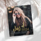 Moderne Abschluss-Ankündigung mit einem individuellen vertikalen Foto. Der Begriff "Klasse von" erscheint in Goldfolie-Skripten, gefolgt vom bearbeitbaren Klassenjahr in goldfarbenem Schriftart mit offenen Serifen. Fügen Sie den Namen und die Schule unten in weißen Sans Serif Schriftart. Ersetzen Sie das Beispielbild einfach durch das Foto Ihres eigenen Absolventen. Ein Schwarzer Farbverlaufsbildschirm trägt dazu bei, die Pop des Textes zu gewährleisten. Das Gegenteil ist schwarz. Ideal für High School oder Uni-Abschluss.