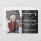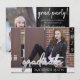 Modernes 2-Foto-Template-Overlay mit horizontalem Abschluss mit Akzenten in einer minimalistischen Schwarz-Weiß-Palette. Das Design umfasst eine schicke, handgeschriebene Pinselschrift, die Typografie und das Bild des Absolventen abbildet, sowie den Namen und das Abschluss-Jahr des Absolventen. Auf der Rückseite ist ein zweites Bild und die Details des Party. #gradparty #bound #graduationparty #classof2019