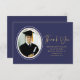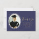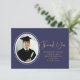Foto Abschluss Navy Blue Gold Script Minimal Dankeskarte