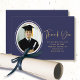 Diese minimale Dankeschön-Karte verfügt über ein Gold-, Marine- und Weißoval, um das Portrait des Absolventen zu markieren. Ein kühnes Drehbuch Dankeschön fügt dieser blauen Karte auch eine Touch Eleganz hinzu.