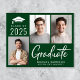 Moderne, umweltfreundliche Ankündigung eines Abschlusses mit 3 Fotos und "Graduate" in einem zeitgenössischen, fett-weißen Drehbuch. Fügen Sie den Namen, das Unterrichtsjahr und die Schule oder Universität in einfachen weißen Typografie.