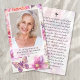 Dieses Gedenkgedicht kann bei einer Feier des Lebens oder einer Beerdigung als Pfand gegeben oder als besondere Hommage an diejenigen geschickt werden, die nicht teilnehmen konnten. Diese Karte kann mit einem beliebten Foto und Ihrer Wahl von Gebet oder Gedicht personalisiert werden. Bitte beachten Sie: Die abgebildete Person wird nur zu Illustrationszwecken verwendet. Bitte ersetzen Sie das Foto vor der Bestellung.