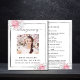 Ein elegantes zweiseitiges Programm. Weiß, silberne Imitate, rosa und weiße Blumen und Platz für ein Foto. Personalisieren und hinzufügen von Namen, Daten und Text.