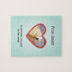 Laden Sie Ihr Lieblings-Foto hoch und passen Sie den Text an, um dieses einzigartige Puzzle zu erstellen. Das Design verfügt über einen Kachelherzen-Rahmen für Ihr Foto mit einem hellgrünen Farbverlauf. Fügen Sie oben Ihren bevorzugten Namen oder einen anderen Text hinzu, und die Nachricht unter dem Foto ist ebenfalls anpassbar.