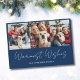 Foto blaue Weihnachtskarte. Einfach den Text ändern und die Fotos durch eigene ersetzen.