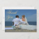 An der Vorderseite befindet sich das Foto einer Braut und ein Bräutigam am Meer. Die Rückseite ist marineblau, mit Vintagen goldblütengoldfarbenen Rändern links und rechts und einem kalligrafischen Drehbuch. Über den Namen steht ein goldenes Herz. Der Text ist golden. Die Worte Dankeschön und die Botschaft auf der Rückseite sind in einem eleganten kalligrafischen Skript geschrieben. Die goldenen Rose sind aus einem Vintagen Buchcover aus dem Jahr 1912, The Complete Poetical Works of Geoffrey Chaucer, jetzt im öffentlichen Bereich.