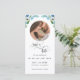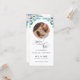Freuen Sie sich auf dieses elegante Foto Save the Date Lesezeichen. Design mit exquisiten handbemalten Aquarellfarben in Weiß, Grün und staubigen Blautönen, die Ihr Foto in einem attraktiven Rundrahmen umrahmen. Herrliche "Save the Date" Phrase in der modernen handgeschriebenen Kalligraphie. Top zentrale Bereich klar für den Fall, dass Sie die Möglichkeit haben wollen, ein ganzes Stanzen, und schmücken Lesezeichen mit einem dekorativen Band. Fügen Sie Namen, Datum, Ort und alle weiteren Informationen hinzu, die Sie möchten. Zurück mit den Blumendetails in der Ecke, mit dem stylischen "new date" Logo mit dem "Save the Date" Satz in der modernen Kalligraphie, Ihrem Datum und Ihren Braut- und Bräutigam-Namen.