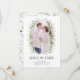 Genießen Sie Ihren besonderen Gast mit dem Foto Botanical Save the Date mit sanften und eleganten Botanicals in den Tönen von Salbei, Jäger und Waldgrün mit schicken und stilvollen Boho Farnen und zarten weißen Blumen, die alle handgemalt in schöner Wasserfarbe. Laden Sie Ihre Gäste dazu ein, Ihren besonderen Tag mit einer Sammlung zu feiern, die Romantik, Schönheit und Launen der Saison einfängt! In der eleganten Boho Chic Greenery Wedding Collection finden Sie die passenden Produkte.