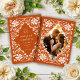 Die rettetest-the-date-Karte vor der Hochzeit ist mit einem Aquarellwerk aus einem wunderschönen, weiß geblümten Rahmen versehen. Der Hintergrund ist eine warme, orangefarbene Farbe. Der Wortlaut auf der Vorderseite und das Foto auf der Rückseite können leicht angepasst oder ersetzt werden. Ideal für eine elegante Vintage oder moderne böhmische Hochzeit im Herbst sowie Hochzeiten zu jeder Jahreszeit.