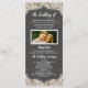 Foto Chalkboard Burlap Lace Wedding Programs - verfügen über einen Burlap- und Spitzen-Hintergrund mit einem Chalkboard-Druck. Verschiedene Textelemente werden in einem eleganten Skript gedruckt, um die rustikale oder ländliche Dekoration zu ergänzen. Laden Sie Ihr eigenes Foto für ein benutzerdefiniertes Aussehen hoch.