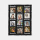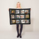 Diese personalisierten Fotocollagendecken schließen 12 Instagram-ähnliche quadratische Bilder plus ein erstes oder den letzten wiederholten Namen 8mal ein (wie Name Ihr Kindes oder Ihr Familienfamilienname). Der Text ist weiß und der Hintergrund ist schwarz. Benutzen Sie die einfachen Vorlagen, um zu personifizieren. "Fertigen Sie weiter" besonders an, um die schwarze Hintergrundfarbe oder die Schriftartfarbe zu ändern.